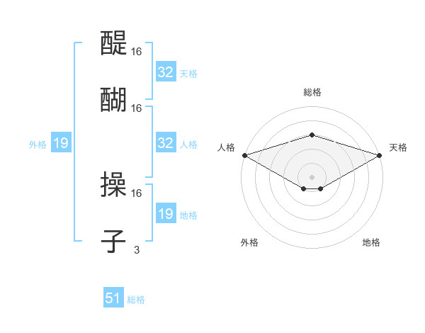 醍醐 操子さんを姓名の画数から五運を鑑定