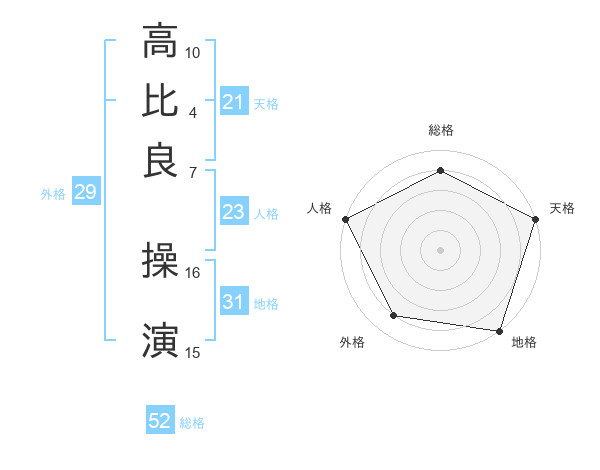 高比良 操演さんの総格は52画の4点!