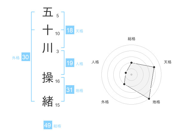 五十川 操緒さんを姓名の画数から五運を鑑定