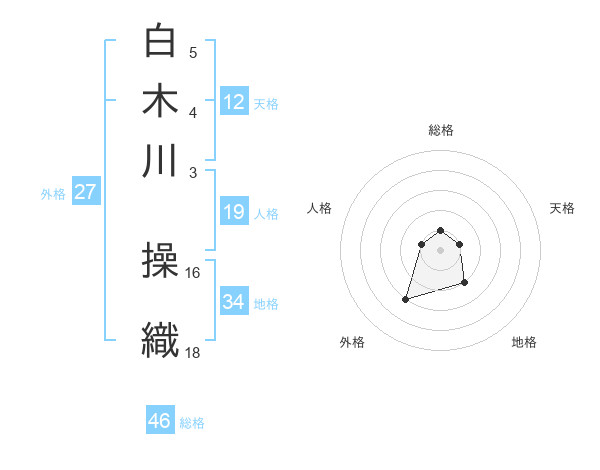 白木川 操織さんの総格は46画の1点!