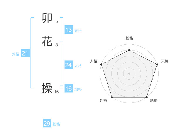 卯花 操さんの外格は21画の5点!