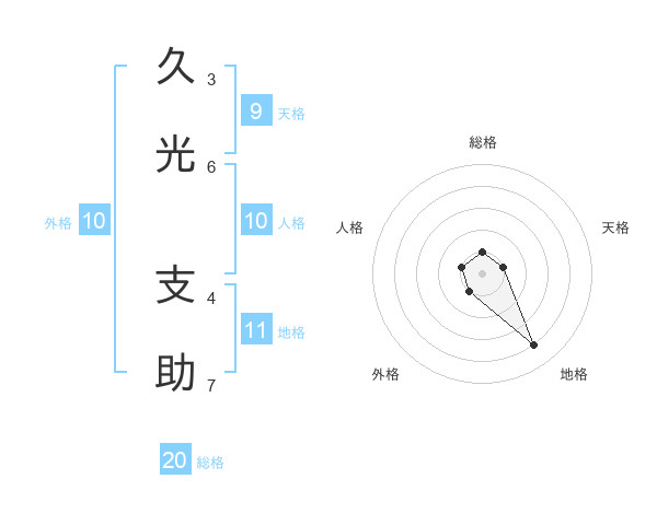 久光 支助さんの総格は20画の1点!