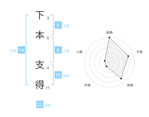 下本 支得さんの総格は23画の5点!