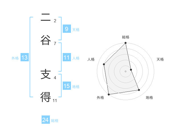 二谷 支得さんの総格は24画の5点!