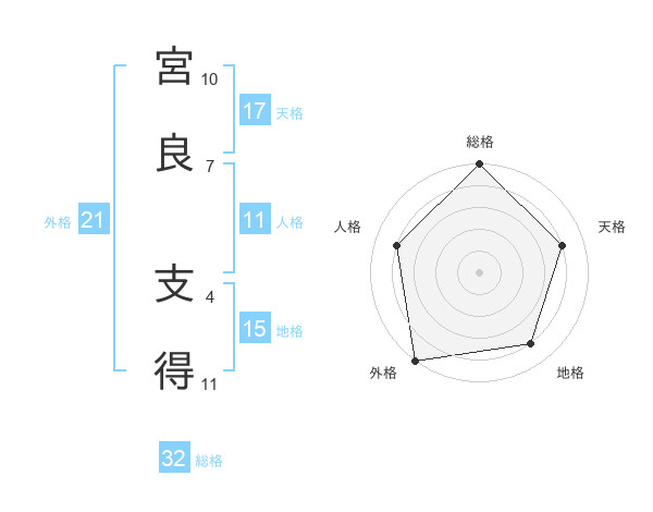 宮良 支得さんの外格は21画の5点!