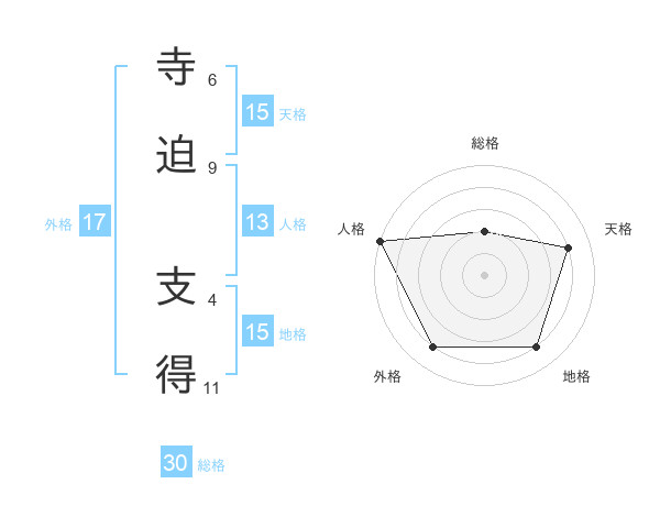 寺迫 支得さんの天格は15画の4点!