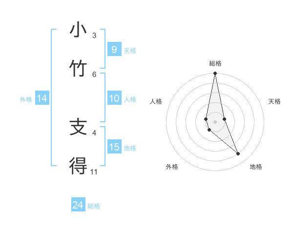小竹 支得さんの総格は24画の5点!