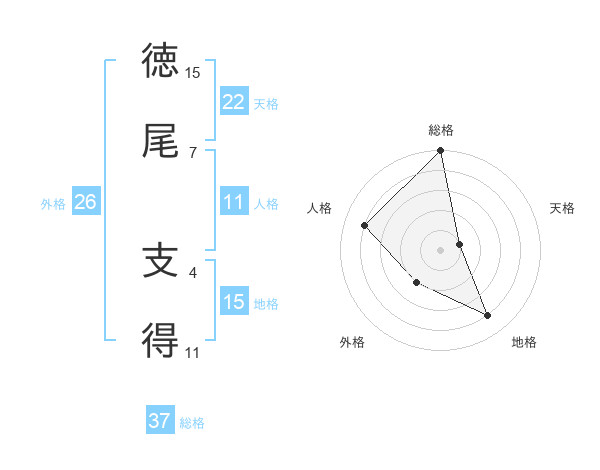徳尾 支得さんを姓名の画数から五運を鑑定