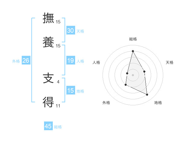 撫養 支得さんの総格は45画の4点!