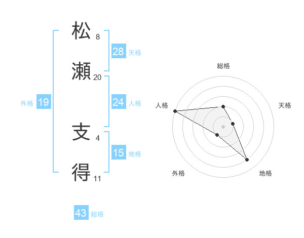 松瀬 支得さんを姓名の画数から五運を鑑定