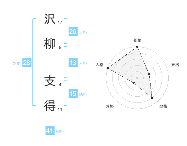 沢柳 支得さんの総格は41画の5点!