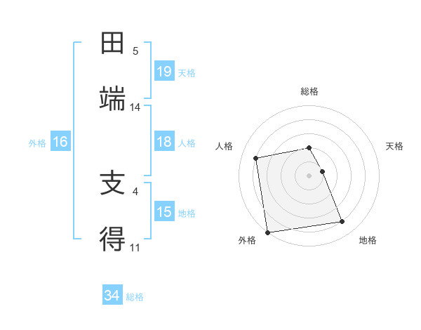 田端 支得さんの総格は34画の2点!