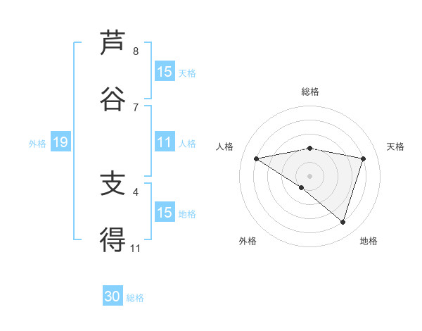 芦谷 支得さんの天格は15画の4点!