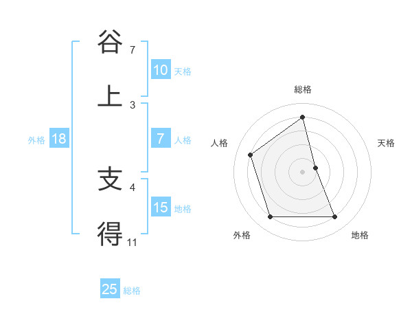 谷上 支得さんの総格は25画の4点!