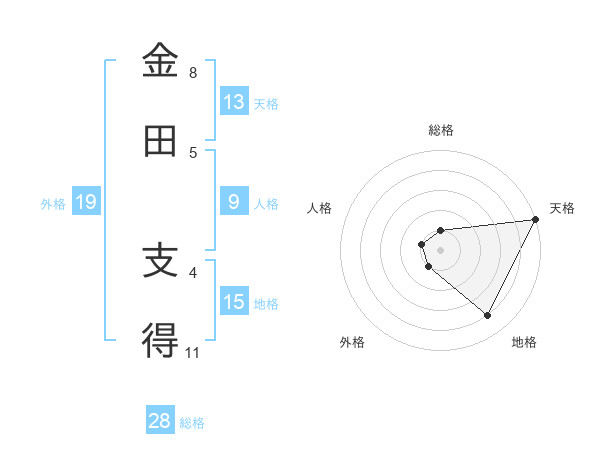 金田 支得さんの天格は13画の5点!