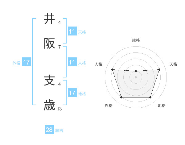井阪 支歳さんの総格は28画の1点!