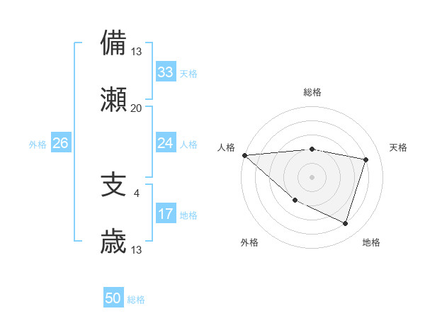 備瀬 支歳さんの総格は50画の2点!