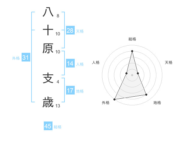八十原 支歳さんの総格は45画の4点!