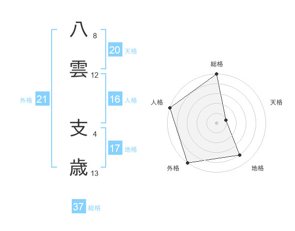 八雲 支歳さんを姓名の画数から五運を鑑定