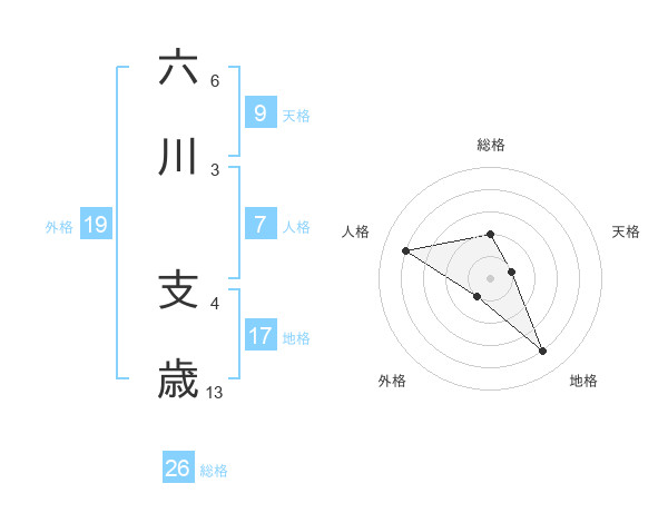 六川 支歳さんの総格は26画の2点!