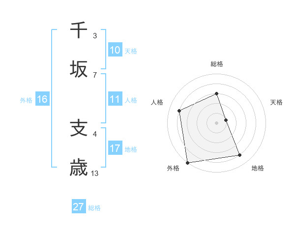 千坂 支歳さんの総格は27画の3点!