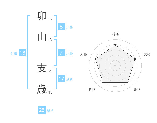 卯山 支歳さんの総格は25画の4点!