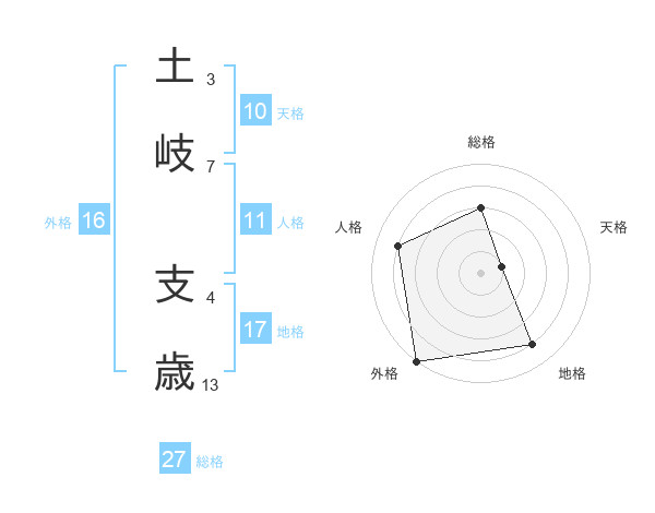 土岐 支歳さんを姓名の画数から五運を鑑定