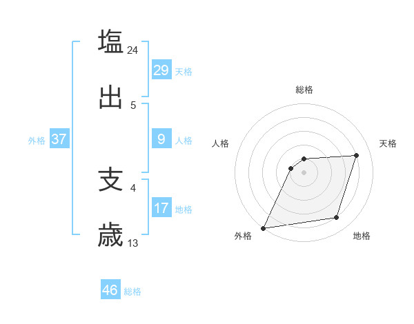 塩出 支歳さんの外格は37画の5点!