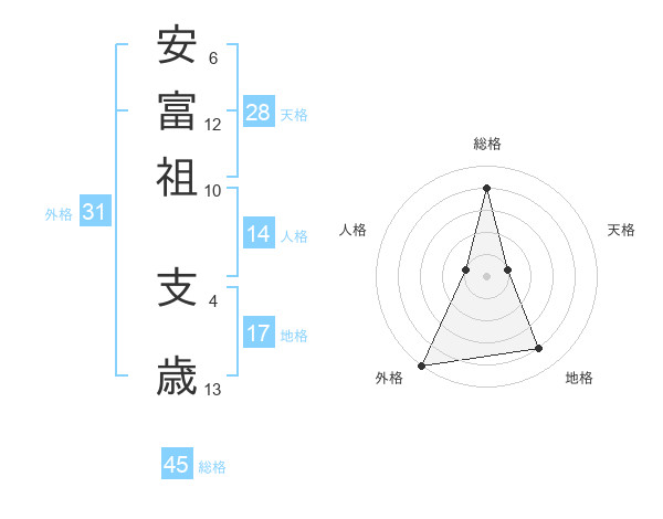 安富祖 支歳さんの総格は45画の4点!