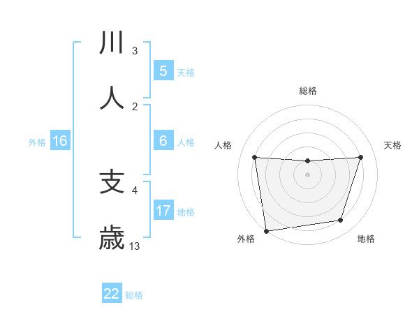 川人 支歳さんの外格は16画の5点!