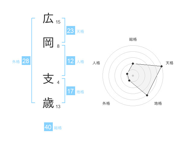 広岡 支歳さんの総格は40画の2点!