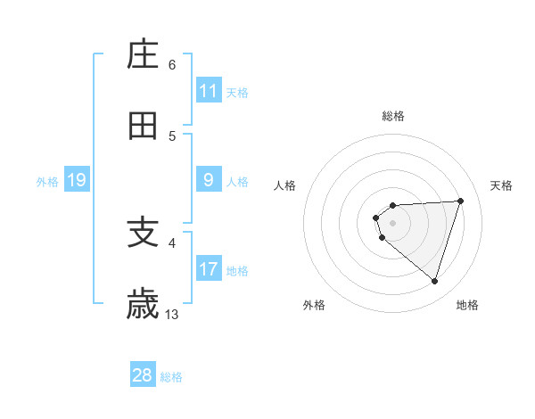 庄田 支歳さんの総格は28画の1点!