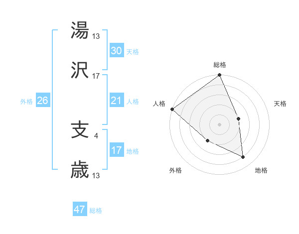 湯沢 支歳さんの総格は47画の5点!