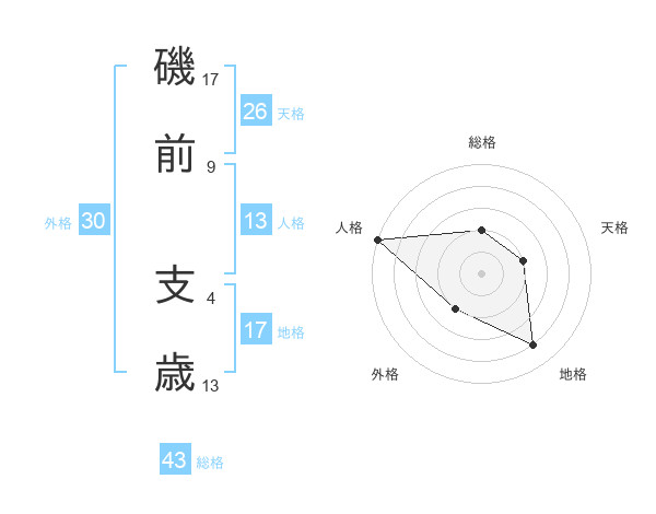 磯前 支歳さんを姓名の画数から五運を鑑定