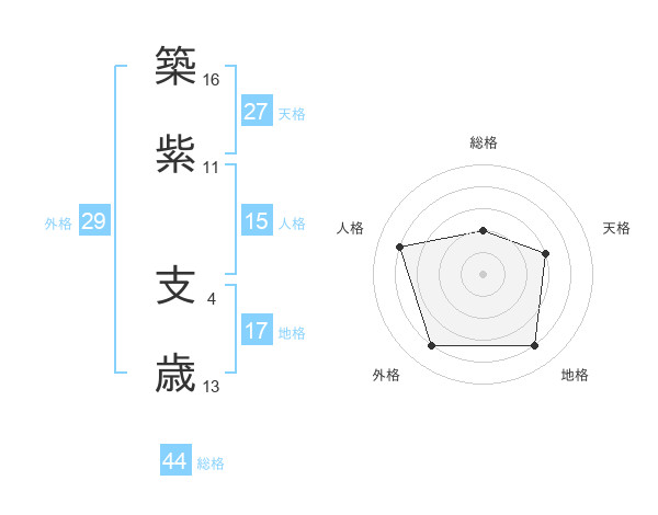 築紫 支歳さんの外格は29画の4点!