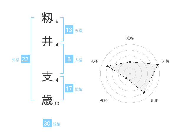 籾井 支歳さんの総格は30画の2点!