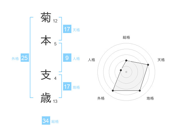 菊本 支歳さんの天格は17画の4点!