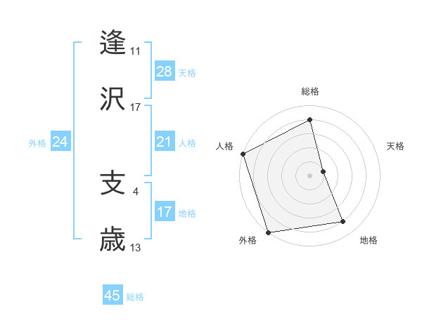 逢沢 支歳さんの外格は24画の5点!