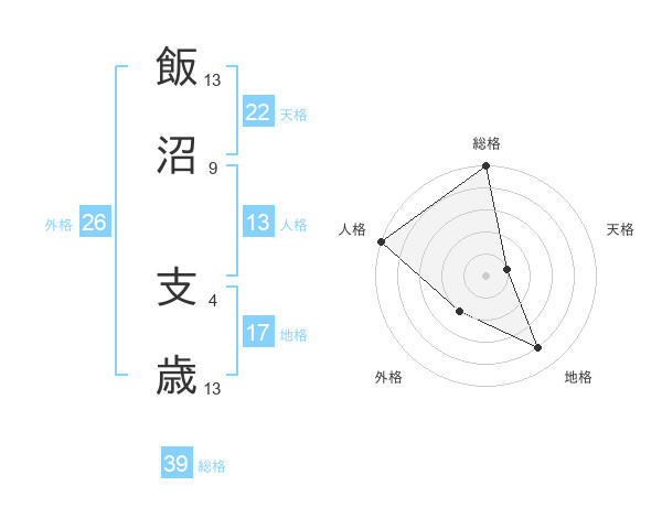 飯沼 支歳さんを姓名の画数から五運を鑑定