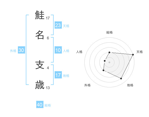 鮭名 支歳さんの総格は40画の2点!
