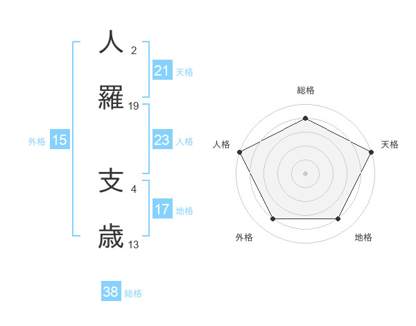 人羅 支歳さんを姓名の画数から五運を鑑定