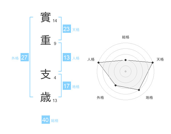 實重 支歳さんの天格は23画の5点!