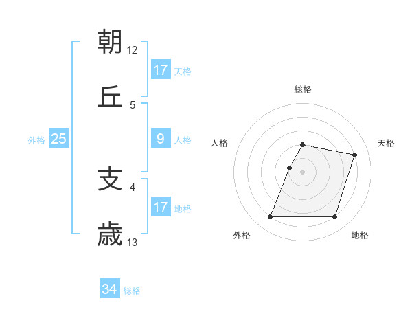朝丘 支歳さんを姓名の画数から五運を鑑定