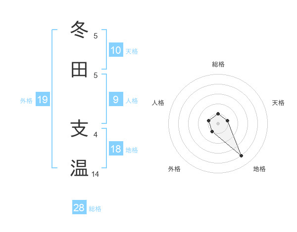 冬田 支温さんの総格は28画の1点!