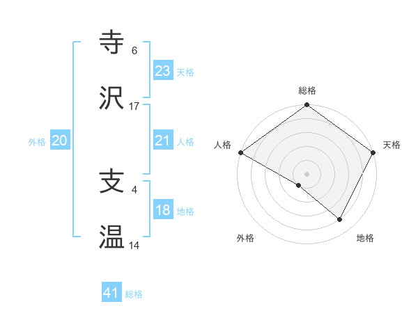 寺沢 支温さんの天格は23画の5点!