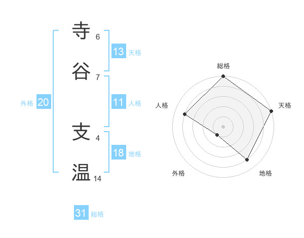 寺谷 支温さんを姓名の画数から五運を鑑定