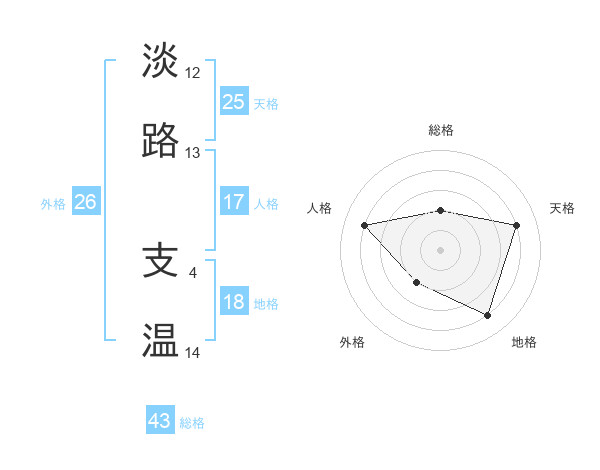 淡路 支温さんの総格は43画の2点!