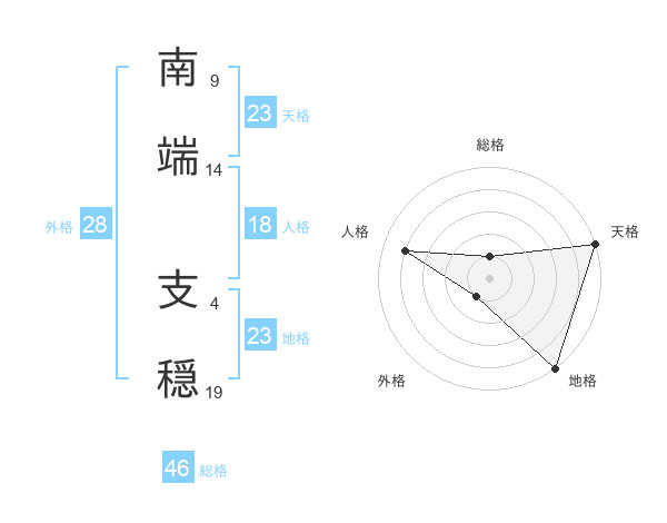 南端 支穏さんの総格は46画の1点!