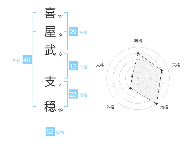 喜屋武 支穏さんを姓名の画数から五運を鑑定
