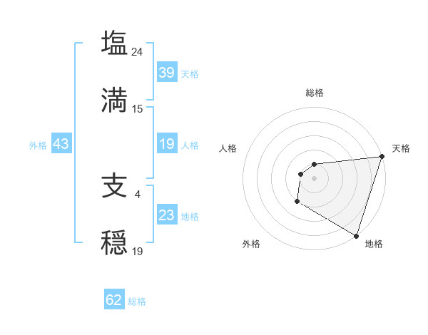 塩満 支穏さんの天格は39画の5点!